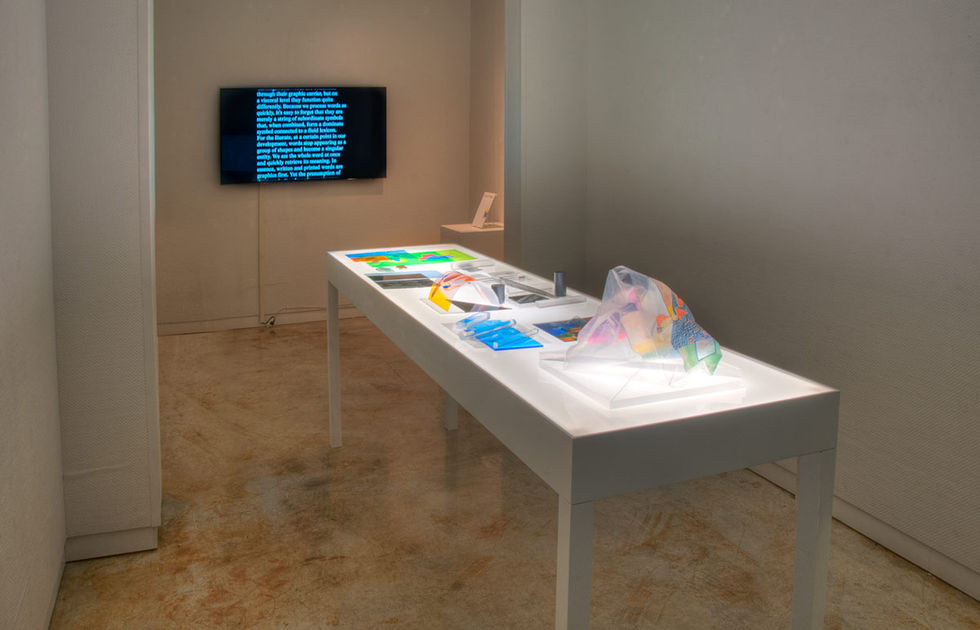 As humanity enters a new graphic skin, how will we remember our physical selves...or are we becoming computational mochas? Where do our avatars hang out when not in use? Café Avatar explores these questions with a playful collection of images, both figurative and abstract. Large modular works, screen printed on industrially stamped synthetic felt, stretch and teeter on acrylic pegs. These works are complimented by a series of small prints that mix screen printing, wood block, and xerox. Exhibited behind vacuum-formed plastic, traditional technique collides with idiosyncratic presentation. Make shift clockworks outfitted with blank CD media silently activate the space and a collection of video floorworks explore both the natural world and virtual space, reminding us that in the digital realm, everything is equidistant. Paired with an exploratory publication presenting an illustrated essay exploring the corporeal realities of our graphic-centric times. If graphics are a skin and our graphics are growing increasingly inhabitable, when we enter a new skin, do we become a new animal?