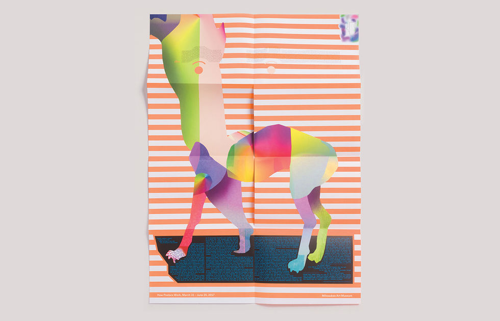 Ellen Lupton is a designer, writer, curator, and educator whose publications such as Thinking with Type and Graphic Design: The New Basics have helped shape the attitudes and aptitude of a generation’s worth of graphic designers. Her latest book, How Posters Work, originated in as a sprawling exhibition at the Cooper-Hewitt National Design Museum, where she serves as curator of contemporary design. The book and exhibition places classic and contemporary posters in several plain-english categories to help viewers better understand the tropes and traditions that make posters impactful. In 2017, the exhibition got a second life at the Milwaukee Museum of Art thanks to Monica Obniski, curator of 20th and 21st Century Design. Having gotten our start as poster designers and printers, we were thrilled when offered the unique challenge of creating an identity and intervention for the exhibition’s Midwest debut. This exhibit coincided with our recent musings on the state of the graphic arts and we used our participation as a spring board to share our ideas of a Graphic Arts Future. While Ellen Lupton’s original exhibition painstakingly showcased the formal qualities that set posters apart, our contributions aimed to shift the dialogue to what these works say about our impending future and changing past. With a series of animations scattered throughout the gallery, we asked the audience (ever so covertly) to consider the formal qualities in the posters, but also the subtle messages left by the creator. For us, the rendering of form, choice of lines, and style of typeface are more than time capsules of bygone trends. They are the shape of humanity’s collective thoughts about itself and its future. Every graphic is a world we could one day live in.